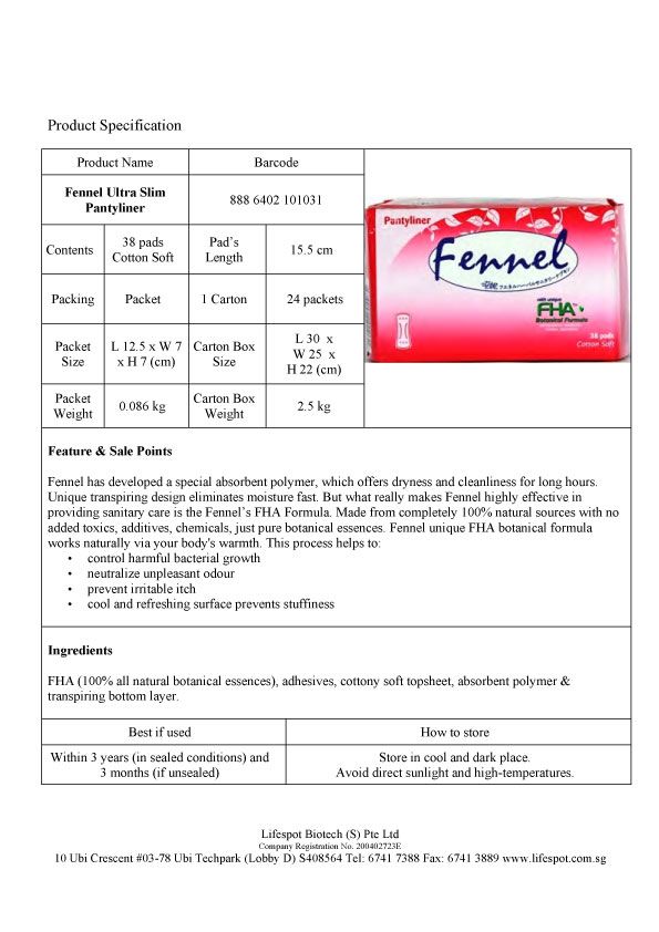 Fennel is not just new; its revolutionary! Combining the best of fabric technology and herbal science, Fennel offers a new level of comfort and cleanliness that nothing else does! Made from a special absorbent polymer and advanced botanical ingredients, it eliminates sanitary problems to keep you feeling dry, fresh and comfortable all day long! Fennel is you, Fennel is happiness!
